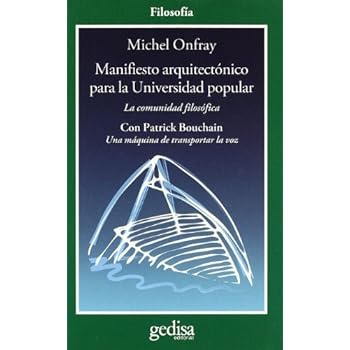 Reseña del editor En 2004, la obra de Michel Onfray titulada La comunidad filosófica proponía una organización conceptual, de forma semejante a un Jardín de Epicuro, destinada a conjurar el nihilismo de nuestros tiempos posmodernos con la ayuda de lugares de reflexión alternativos a la brutalidad del movimiento liberal planetario. Se agregaban a esta proposición algunos desarrollos sobre el carácter concreto - aunque filosófico - de la Universidad Popular creada en 2002 en Caen, en la Baja Normandía, provincia natal del autor. El encuentro, muy similar a un flechazo intelectual, de Michel Onfray con el trabajo libertario del arquitecto Patrick Bouchain amplió la comunidad a una nueva dimensión, también conceptual y concreta, puesto que se trata de dar una consistencia material a la Universidad Popular y de echar las bases de un nuevo objeto filosófico y arquitectónico que haga realidad el proyecto. Este nuevo proyecto define una máquina de transportar la voz a la cual Patrick Bouchain presta su inteligencia y su diseño. La máquina traza los contornos de un ágora nueva que se resiste a la lógica mediática promoviendo una instancia mediológica: propone claramente contrarrestar la razón mediática que cuenta principalmente con lo espectacular de las imágenes, para activar, en cambio, una razón mediológica que escenifica una palabra, teatraliza un verbo y ofrece una filosofía realmente acústica. El edificio de la Universidad popular apuesta por la retórica de las tribunas, privilegia lo funcional a lo estético, se niega a celebrar la imagen como reflejo de lo real para poner en el centro la palabra, las ondas de un cuerpo, la electricidad de un pensamiento, la voz viva del pueblo que constituye lo popular de la universidad. Biografía del autor Michel Onfray (Argentan, 1959) es uno de los ensayistas franceses más leídos y prestigiosos de la actualidad. Siempre molesto para el establishment, reivindica el libertinaje, el placer sensual, el ser más que el tener y la libertad individual por encima de cualquier tipo de gregarismo. Ha publicado más de 40 libros, entre ellos "La fuerza de existir", "Tratado de ateología o Antimanual de filosofía" y "La comunidad filosófica: manifiesto por una Universidad popular", este último publicado por Editorial Gedisa.Tapa blanda=96 páginas. Editor=GEDISA; Edición: 1 (1 de enero de 2015). Colección=CLA-DE-MA / Filosofía. Idioma=Español. ISBN-10=8497843169. ISBN-13=978-8497843164. Valoración media de los clientes=Sé el primero en opinar sobre este producto. Clasificación en los más vendidos de AmazonConsultaFilosofía=nº109.564 en Libros (Ver el Top 100 en Libros) .zg_hrsr { margin: 0; padding: 0; list-style-type: none; } .zg_hrsr_item { margin: 0 0 0 10px; } .zg_hrsr_rank { display: inline-block; width: 80px; text-align: right; } n.° 1473 en Libros > n.° 3412 en Libros > Sociedad y ciencias sociales >.