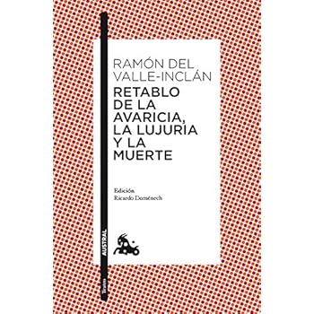 Reseña del editor Aunque incomprendido en su tiempo, el teatro de Valle-Inclán es una creación genial; su obra teatral lo convierte en uno de los mejores dramaturgos en lengua castellana del siglo xx. Retablo de la avaricia, la lujuria y la muerte agrupa cinco piezas que configuran un «retablo» mítico en el que se mueven todos los pecados capitales. La gran lección que Valle-Inclán enseña es que la realidad no consiste sólo en lo que vemos en apariencia, sino en lo que podemos presentir a través del simbolismo del lenguaje: el misterio de la vida y la muerte. Ricardo Doménech, catedrático de la Real Escuela Superior de Arte Dramático, que ha preparado esta edición, ofrece en su estudio introductorio una doble lectura que guía, a través de la superficie de los textos, hacia su significación simbólica. Biografía del autor Ramón del Valle-Inclán fue un novelista, poeta y autor dramático español, además de cuentista, ensayista y periodista. Inicia estudios universitarios, pero no termina la carrera de Derecho, ya que muy pronto se decanta por la literatura. Tras pasar una temporada en Madrid, marcha a México donde escribe para la prensa y, sobre todo, conoce y asimila el Modernismo. Vuelve a Madrid y se incorpora a la vida cultural y bohemia de la ciudad como promotor del Modernismo. Provocativo y extravagante, su estilo literario evolucionó desde un exuberante modernismo y un maduro expresionismo hasta sus peculiares composiciones esperpénticas. De entre su obra destacan las cuatro Sonatas (de primavera, de estío, de otoño y de invierno), que suponen la culminación del modernismo español; Águila de blasón, la primera de sus llamadas comedias bárbaras; La lámpara maravillosa, resumen de su estética y ética; La cabeza del dragón, y Luces de Bohemia.Tapa blanda=192 páginas. Editor=Austral (5 de abril de 2016). Colección=Teatro. Idioma=Español. ISBN-10=846704733X. ISBN-13=978-8467047332. Valoración media de los clientes=Sé el primero en opinar sobre este producto. Clasificación en los más vendidos de AmazonTeatro=nº55.320 en Libros (Ver el Top 100 en Libros) .zg_hrsr { margin: 0; padding: 0; list-style-type: none; } .zg_hrsr_item { margin: 0 0 0 10px; } .zg_hrsr_rank { display: inline-block; width: 80px; text-align: right; } n.° 325 en Libros > Literatura y ficción >.